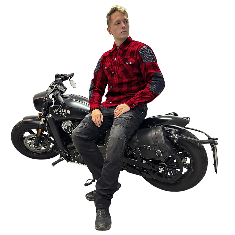 Camicia da moto da uomo in cotone. Ideale per le giornate calde e per la città. Certificata EN-17092 con protezioni rimovibili per schiena, gomiti e spalle. Con rinforzo in Kevlar.