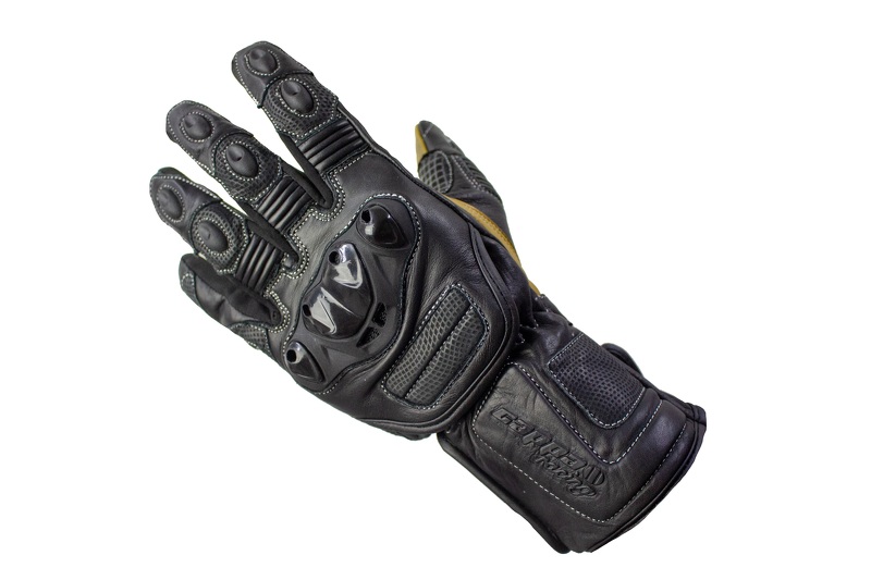 Guanti moto SOCHI da uomo in pelle lunghi nero/beige