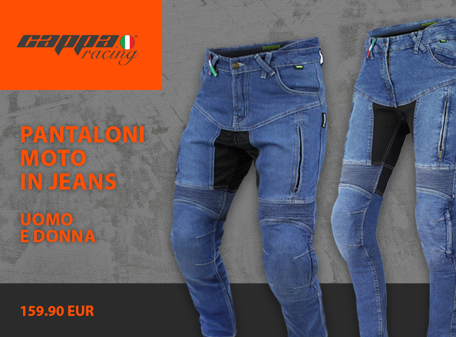 Pantaloni moto da uomo MORENO in tessuto blu/rosso/beige