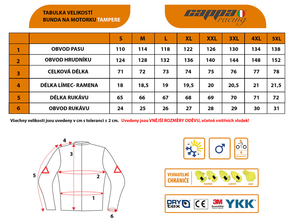 Dlouhá pánská textilní bunda na motocykl. Certifikovaná EN-17092 s vyjímatelnými chrániči ramen, zad a loktů. Vybavena hrudními ventilačními panely.
