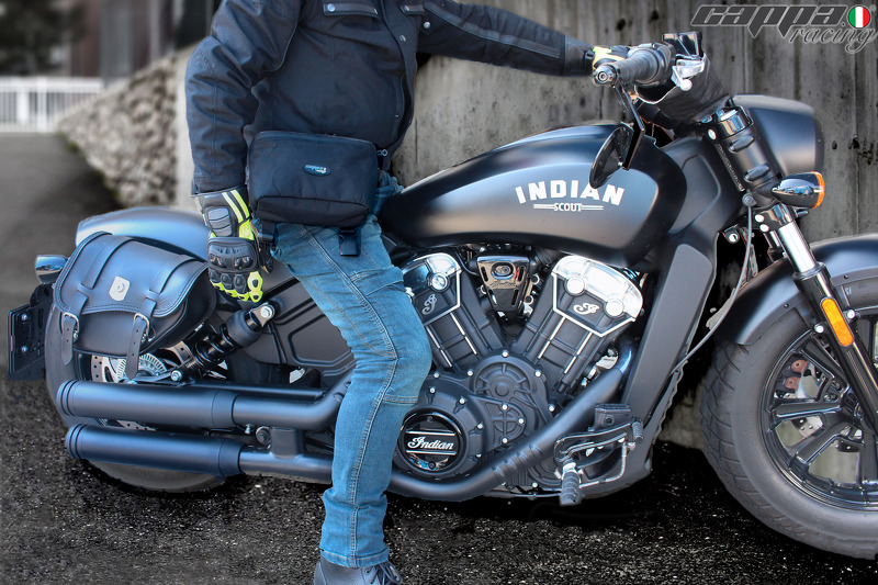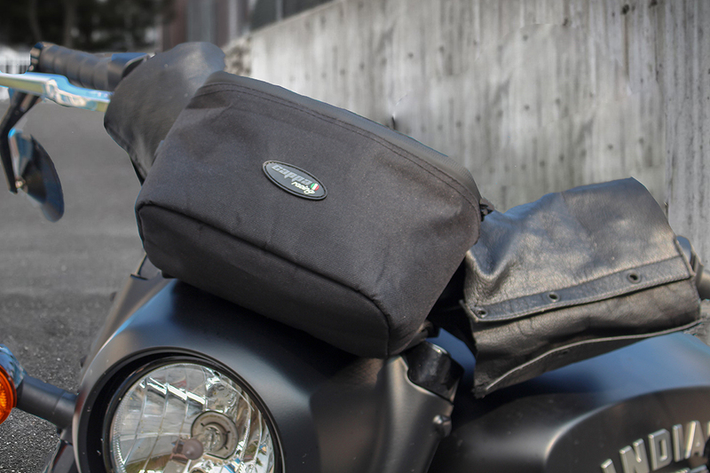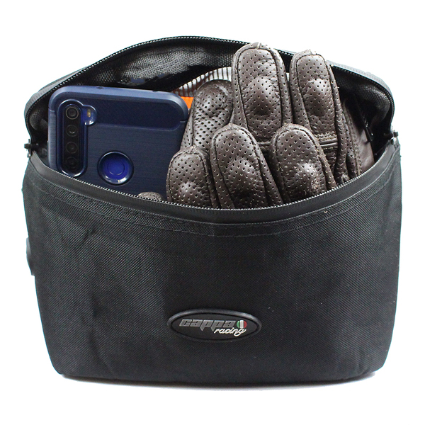 La borsa è dotata di una tasca principale con una capacità di 3,1 litri e di una tasca superiore trasparente per il navigatore o il telefono cellulare. In caso di maltempo, la borsa è dotata di una copertura elastica e impermeabile nella tasca posteriore.