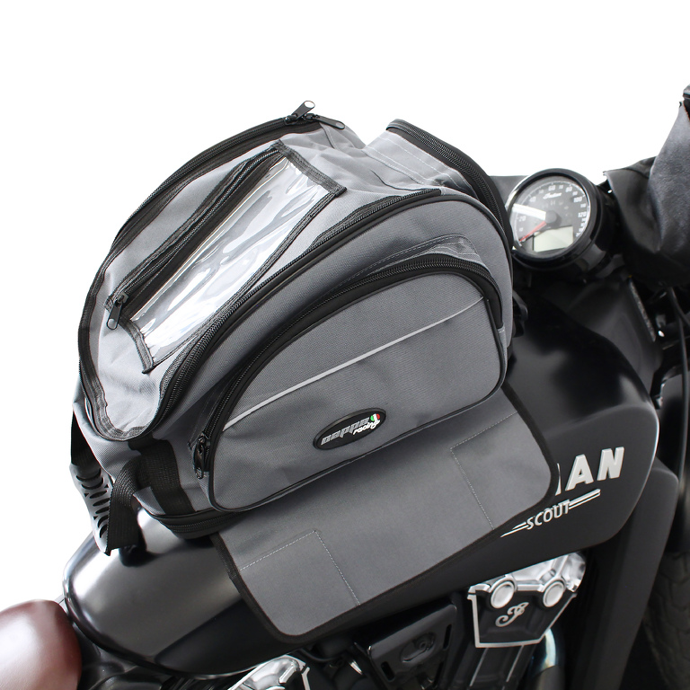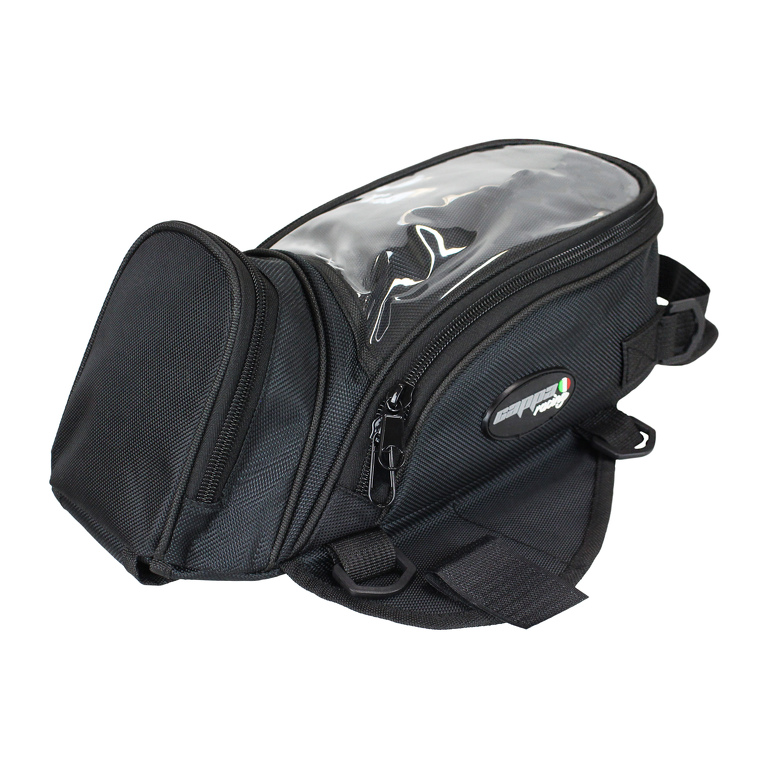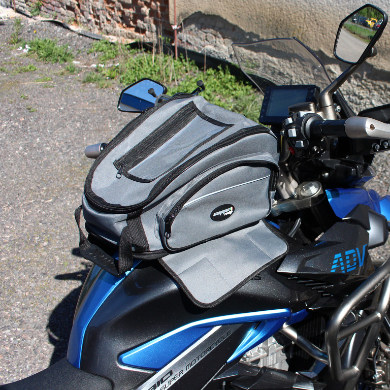Borsa con attacco magnetico per il serbatoio della moto. La base antiscivolo con quattro magneti garantisce un fissaggio sicuro. Questa borsa da serbatoio offre una capacità impressionante, che apprezzerete soprattutto durante i percorsi lunghi o di più giorni, ad esempio nelle gare di enduro.