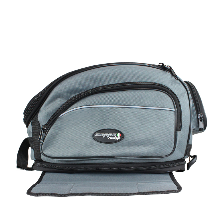 Una tasca superiore con pellicola trasparente consente di riporre in modo sicuro un telefono cellulare o una mappa per la navigazione. La pellicola permette anche di controllare il telefono cellulare inserito.