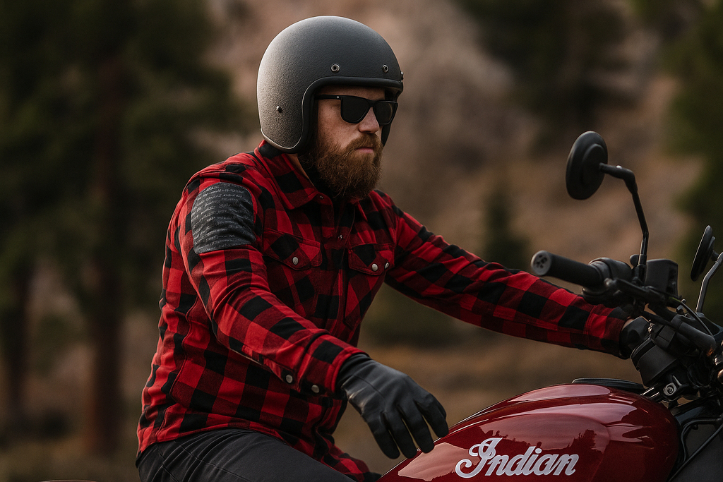 Camicia da moto da uomo in cotone. Ideale per le giornate calde e per la città. Certificata EN-17092 con protezioni rimovibili per schiena, gomiti e spalle. Con rinforzo in Kevlar.