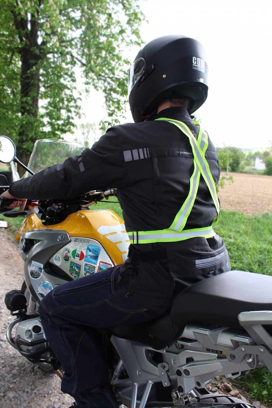 Cinghie riflettenti verdi per una maggiore visibilità sulla strada. Universale, taglia regolabile, chiusura con fibbia in plastica.