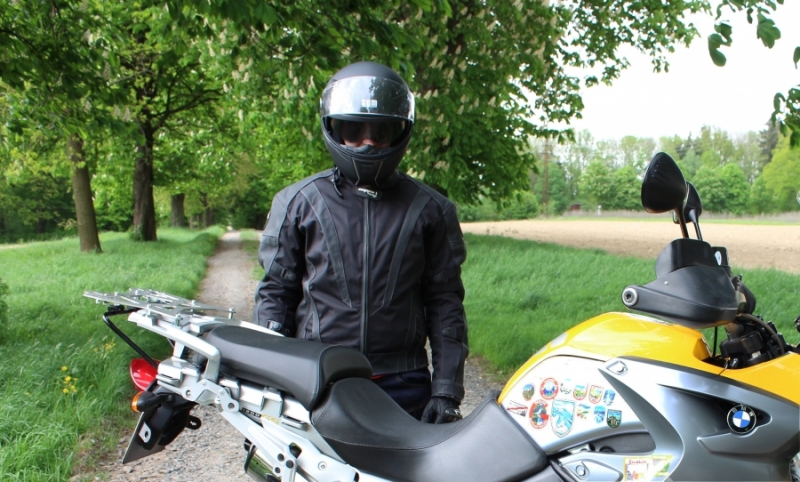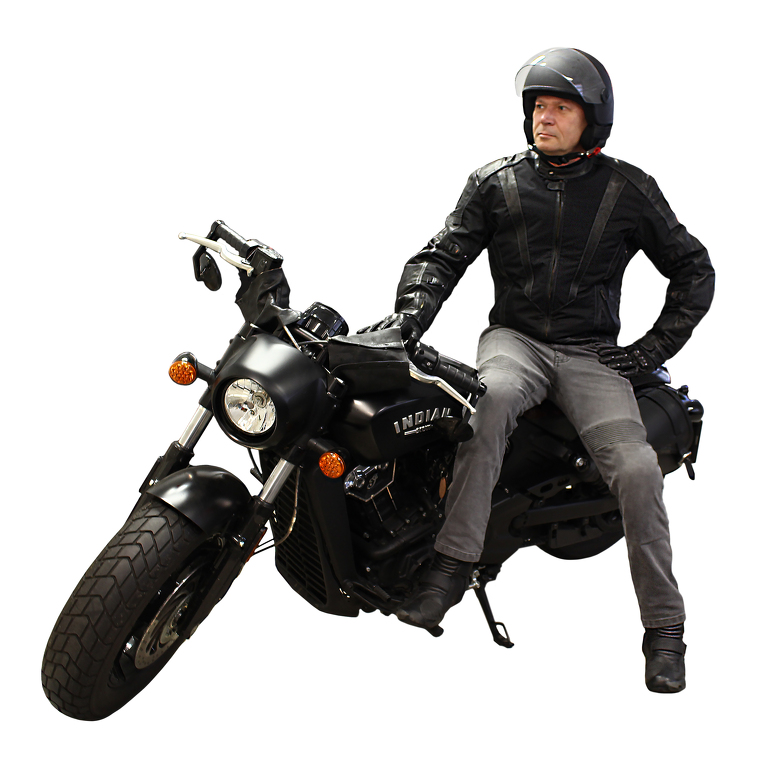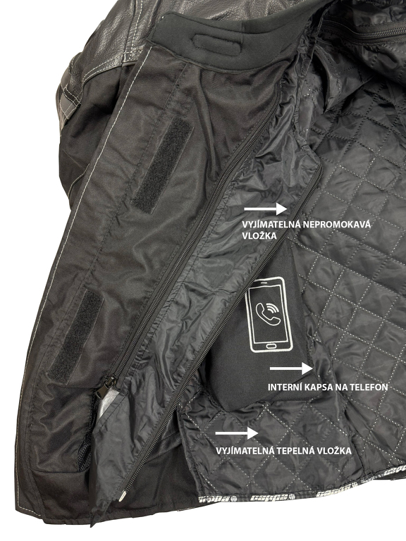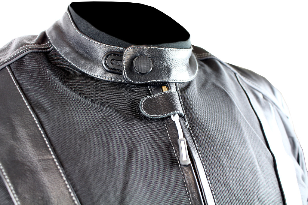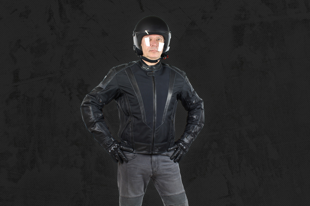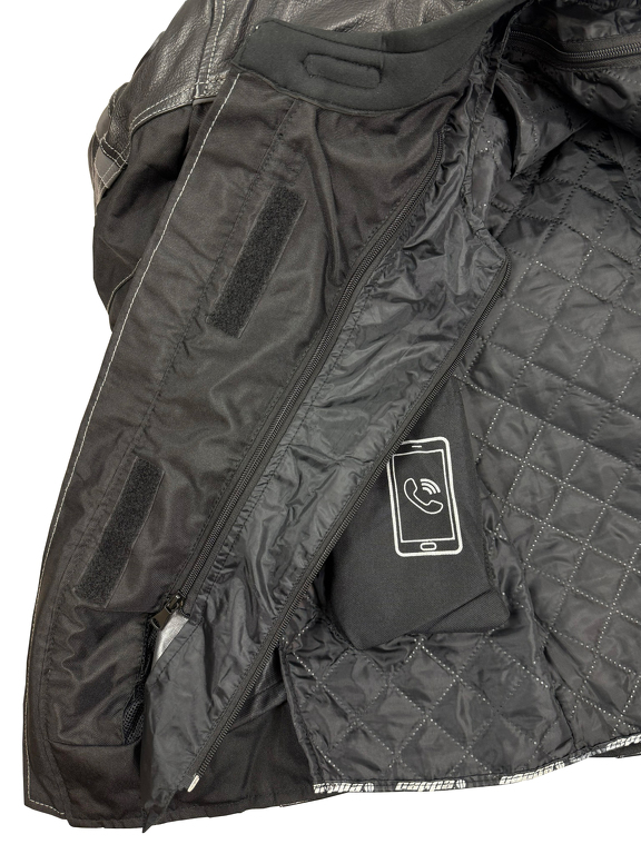 Giacca corta da moto in pelle uomo. Certificato con protezioni removibili sulle spalle, la schiena e