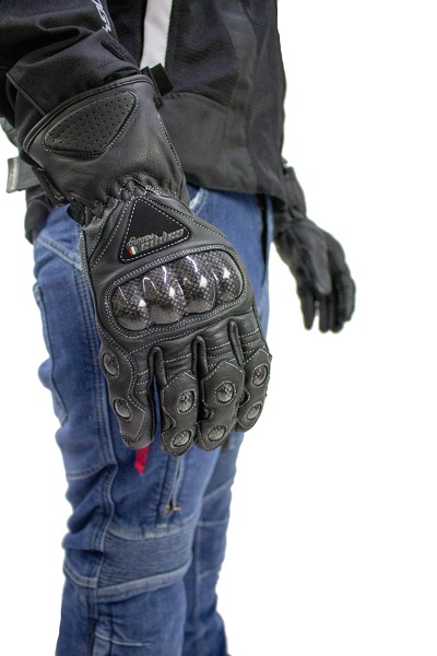 Guanti moto CAP in pelle lunghi neri